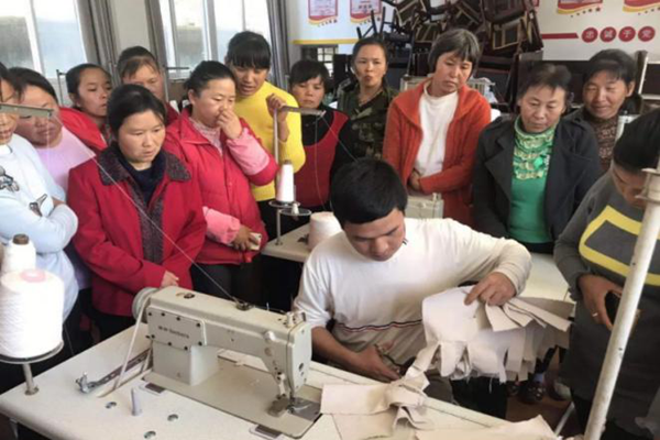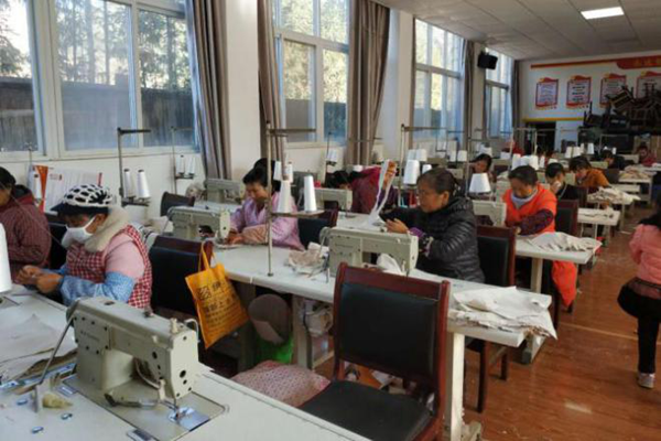 进入社区,首先就看到忙碌的车间,二十多名留守妇女都在忙于加工缝纫手套,技术员穿梭在女工中间指导缝纫技巧,一双双成品手套以流水作业的方式完成。据社区负责人介绍,龙泉街道“扶贫车间”进社区手套加工项目采取社区与安宁海祥劳保有限公司签订合作协议,由公司提供60台生产设备及加工材料,对贫困户等弱势群体进行岗前培训合格后,由农户在家中进行加工生产,加工合格的手套由公司统一回收,每加工一双手套得劳务费0.5元的模式进行,目前共有170人报名,其中包括120名留守妇女参加培训班学习技能,利用闲暇碎片时间在家进行一些轻巧的手工加工创业,对家庭生活起到了帮补作用,同时也不会影响其他农作生产。