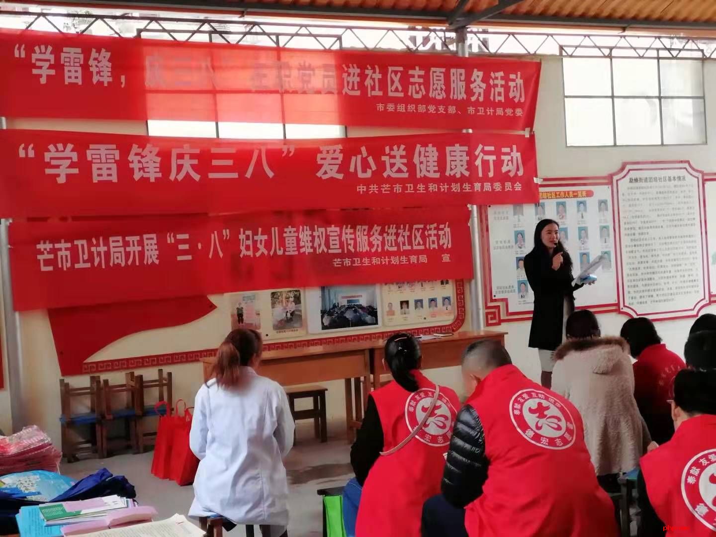 团结社区、东北里社区、丙午社区、建国社区携驻社区单位深入开展了“学雷锋庆三八”爱心送健康、妇女儿童维权、禁毒防艾等志愿者活动。活动现场,工作人员向辖区妇女群众广泛宣传《妇女儿童权益保障法》、《反家庭暴力法》,号召妇女同胞知法、懂法、守法,当权益受到侵害时,运用法律武器维护自己的权益。免费为女同胞提供了量血压、测血糖、疾病诊断以及健康咨询等服务,讲解了常见的女性保健、生理健康等方面的知识,随后还安排了“你问我答”的互动环节;城西社区、新村社区邀请了社区卫生服务中心的医师,以“减盐、减油、减糖,健康体重、健康骨骼、健康口腔”为主题,深入浅出得向妇女群众们讲解高血压、糖尿病、骨质疏松等疾病对身体的危害,强调减盐、减油、减糖清淡饮食对健康的重要性,希望“重口味”的居民可以改正饮食习惯。