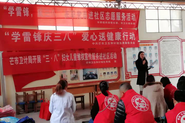 团结社区、东北里社区、丙午社区、建国社区携驻社区单位深入开展了“学雷锋庆三八”爱心送健康、妇女儿童维权、禁毒防艾等志愿者活动。活动现场,工作人员向辖区妇女群众广泛宣传《妇女儿童权益保障法》、《反家庭暴力法》,号召妇女同胞知法、懂法、守法,当权益受到侵害时,运用法律武器维护自己的权益。免费为女同胞提供了量血压、测血糖、疾病诊断以及健康咨询等服务,讲解了常见的女性保健、生理健康等方面的知识,随后还安排了“你问我答”的互动环节;城西社区、新村社区邀请了社区卫生服务中心的医师,以“减盐、减油、减糖,健康体重、健康骨骼、健康口腔”为主题,深入浅出得向妇女群众们讲解高血压、糖尿病、骨质疏松等疾病对身体的危害,强调减盐、减油、减糖清淡饮食对健康的重要性,希望“重口味”的居民可以改正饮食习惯。
