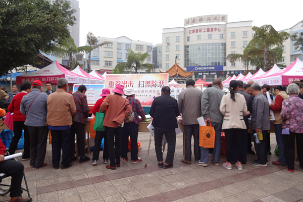 活动现场,工作人员通过悬挂扫黑除恶专项斗争横幅、展出扫黑除恶宣传展板、设立扫黑除恶咨询台、发放扫黑除恶宣传单等形式,向过往群众宣传黑恶势力违法犯罪活动对石屏县长治久安、百姓安居乐业的危害性,讲解12类黑恶势力违法犯罪活动,并公布涉黑涉恶线索举报方式与奖励办法,号召民众关注、支持并参与全民扫黑除恶专项斗争。县计生协会在宣传扫黑除恶相关知识的同时向群众发放了预防艾滋病、流动人口管理、女性生殖健康知识、云南省计划生育条例知识问答等10余种1000多份宣传资料,500个宣传环保袋,活动参与人员众多,宣传效果非常好。