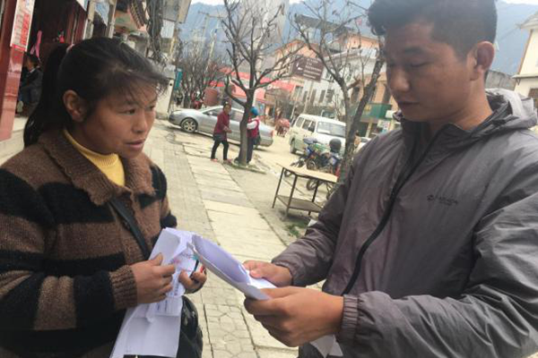 丙中洛镇秋那桶村村民李汉英按照理赔须知要求准备齐相关资料,等待中国人寿保险公司贡山支公司就近便捷个性化服务。3月12日在丙中洛镇启动新一年度的综合险之际,县、乡、村三级计生协会和国寿贡山支公司在丙中洛镇街道找到前来卫生院看病的受险人,中国人寿保险公司贡山支公司张天宇经理梳理理赔材料,立即办理理赔事宜,在第二个工作日理赔金1350元按时到秋那桶村民账户。
