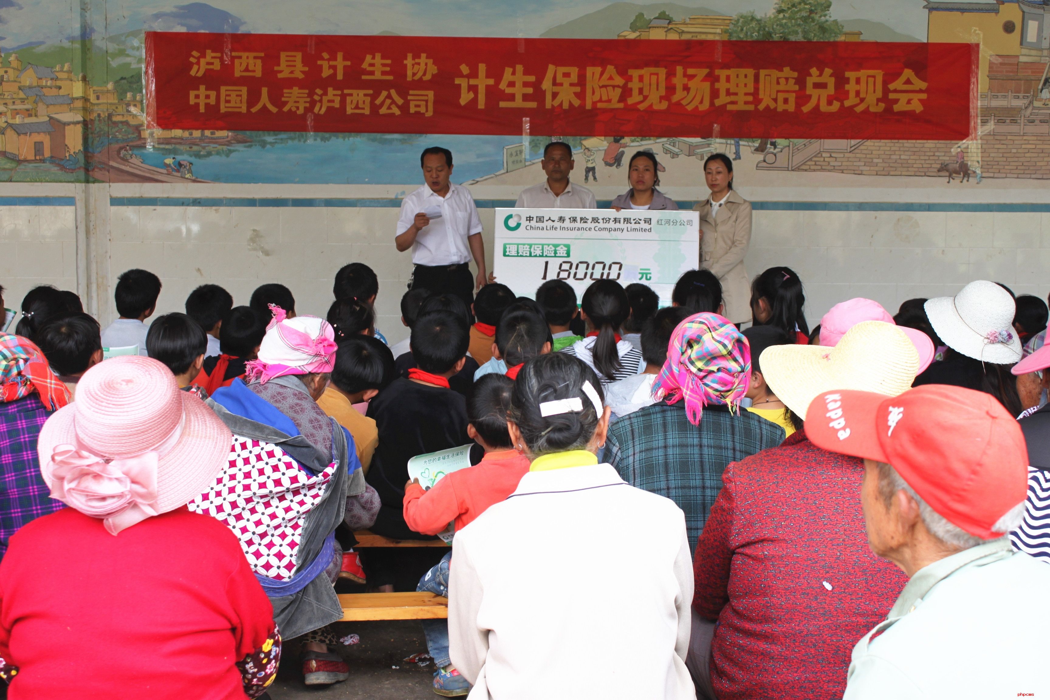 3月20日,泸西县计生协与中国人寿泸西支公司联合,到永宁乡城子新村召开计划生育家庭意外伤害保险现场理赔兑现会。永宁乡各村委会主任、计生宣传员、城子村群众等100余人参加。