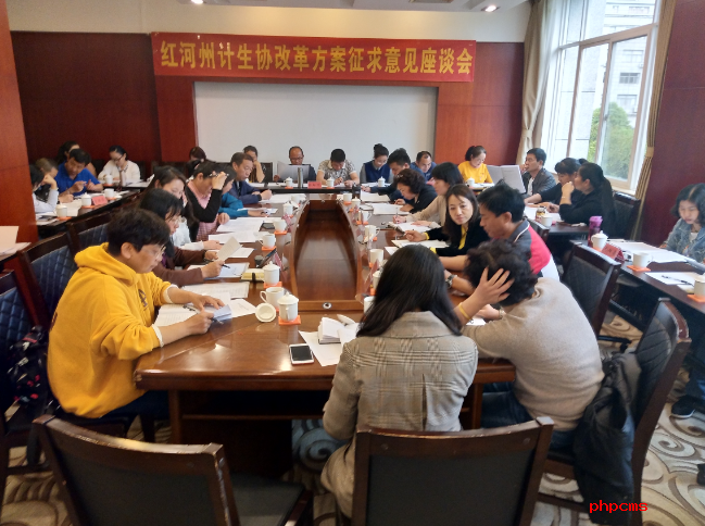 4月3日10:30时,红河州计生协会改革推进工作领导小组召开红河州计生协改革方案征求意见座谈会,听取全州计生协会基层对红河州计划生育协会改革实施方案的意见和建议。参会人员有13县市计生协专职副会长或分管副会长、秘书长,乡镇或村、(社区)计生协会干部及州计生协机关全体干部职工共38人参会。