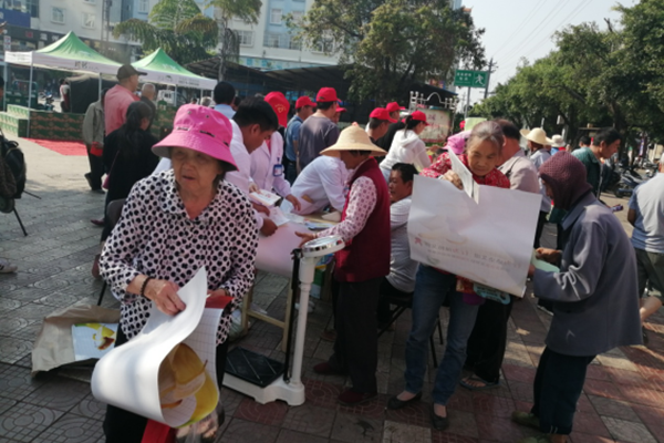 此次宣传活动共悬挂横幅1条,展出宣传展板6块,发放宣传资料1600余份、环保袋500余个、纸巾盒600个、围裙1000个,医疗义诊测量血压70余人,健康咨询100余余人。