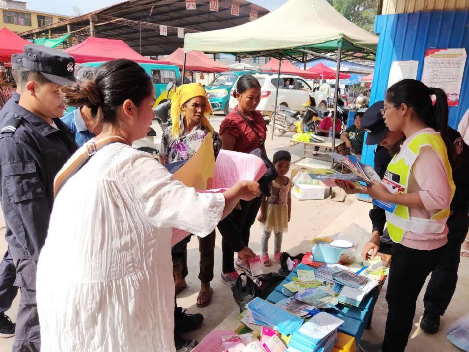 5月5日,西盟县中课镇计生办联合镇派出所、科协、林业中心等多家单位到镇集贸市场街道开展“2019年中课镇5.29计划生育协会活动日”宣传活动。