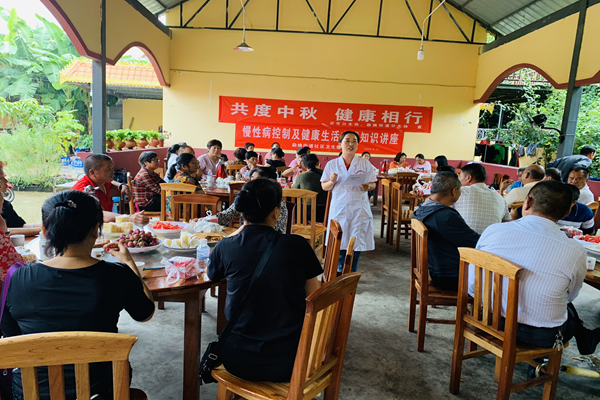 活动现场,社区卫生服务中心的医务人员为老人们讲解了慢性病、健康自我保健知识,并发放了家庭健康促进知识读本、控油限盐壶等健康宣传品。