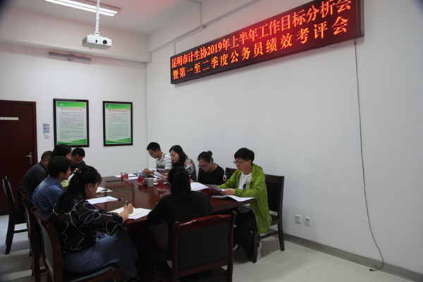 8月16日,昆明市计生协召开2019年上半年工作目标分析会暨第一至二季度公务员绩效考评会。市委目督办机关考评处李朝旭处长到会指导,市计生协党组书记、常务副会长普跃英出席并讲话,党组成员、秘书长潇潇主持会议。