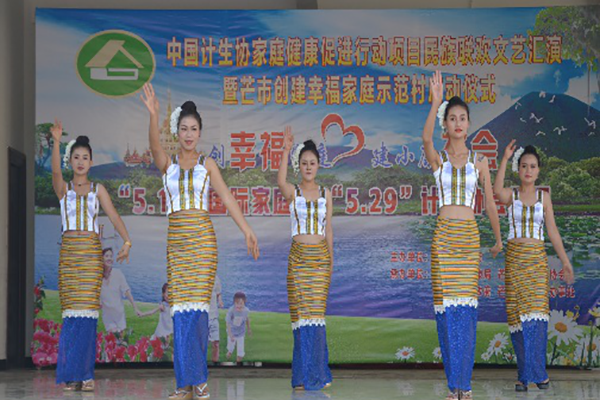 2018年,芒市被中国计生协确定为全国20个家庭健康促进行动项目试点之一,芒市以勐焕街道5个试点社区(建国、三棵树、团结、丙门、城西)为老年家庭提供大量行之有效的健康促进服务,工作得到了中国计生协的肯定与表扬。此次活动,5个试点社区、芒市镇、风平镇、芒晃村民小组、芒市老干部金秋艺术团文艺代表队为观众带来了了快板《扫黑除恶》、《泼水节的吉祥水》《孔雀调》、柔力球《母亲是中华》等共13个形式多样、内容丰富、精彩纷呈的文艺节目,赢得阵阵掌声。最后在协会会员之歌-《群众的一个家》的歌声中落下帷幕。