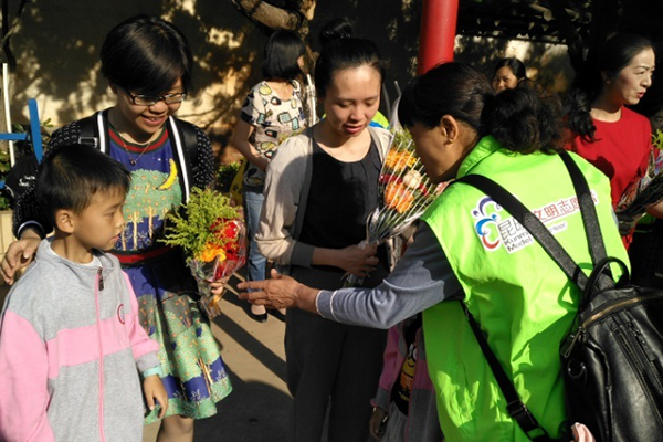 活动在升国旗、唱国歌,少先队员敬队礼中拉开序幕,计生协志愿者代表向参加活动的老师、家长、小朋友们致词;组织状元楼计生协举办的优秀征文“给妈妈写一封信”的6名获奖小作者,与母亲现场诵读作文,与志愿者向母亲献花敬礼,表达对伟大母亲的感恩之情。随后,获奖征文的学生家长上台分享如何学会建立和谐的亲子关系、学会接纳孩子、关注孩子的兴趣等方面的体会。最后志愿者向小朋友们发放价值4000余元的学习用品,鼓励他们认真学习,将来做一名对祖国、对社会有用的人。