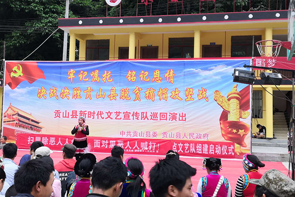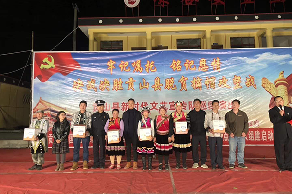 5月14日,贡山县普拉底乡计生协会抓住贡山县新时代文艺宣传队巡回演出为契机在贡山县普拉底乡咪谷安置点开展十九大精神及习总书记回信勉励云南贡山独龙族群众宣讲活动。