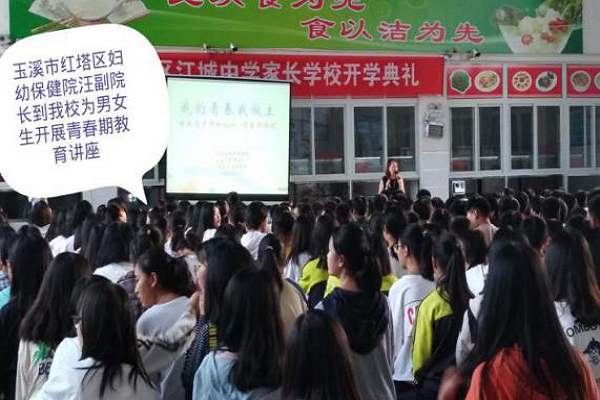 玉溪市江川区江城中学充分发挥好青春健康教育示范基地的作用,结合“5.29”活动的开展,邀请主任医师、玉溪市兴玉名医、玉溪市红塔区妇幼保健院业务副院长汪华老师,于2019年5月21日在江城中学食堂开展了“我的青春我做主”的青春期健康教育专题讲座。
