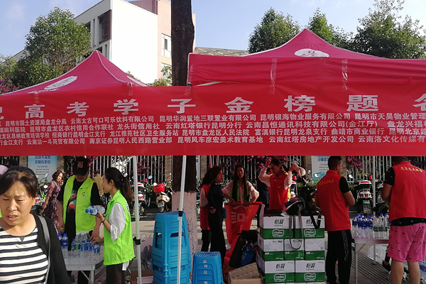 6月7日、8日,昆明市盘龙区龙泉街道盘江社区计生协联合辖区公共单位、爱心企业,发动社区党员、协会会员开展高考“爱心助考”活动。