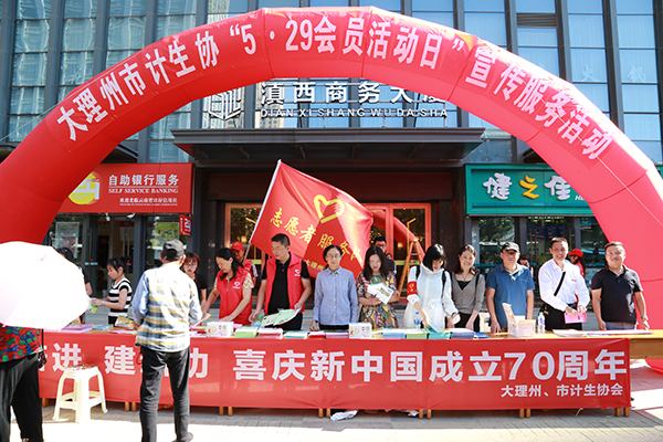 5月30日,大理州计生协、大理市计生协、中国人寿保险大理分公司等单位,组织州、市、泰安社区计生协工作者及志愿者在大理市下关镇泰安社区联合开展以“共奋进建新功 喜庆新中国成立70周年”为主题的“5·29会员活动日”宣传服务活动。