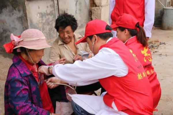 当天上午,志愿者首先来到青龙村委会,他们深入贫困户家中,走访了7户患有高血压、糖尿病等慢性病的贫困人群,为他们免费测量血压和血糖,仔细询问了目前的病情,并对他们的用药进行了指导。