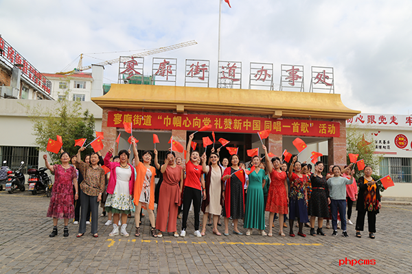在街道院内和煤建南村住宿区,街道和社区全体妇女干部、辖区众多妇女姐妹们有序的站好队,在老师的指导下,手中挥舞着鲜红的小红旗,齐声歌唱《我和我的祖国》,歌声优美响亮。“我和我的祖国,一刻也不能分割,无论我走到哪里,都流出一首赞歌……”唱出了心中的骄傲和对祖国的热爱。