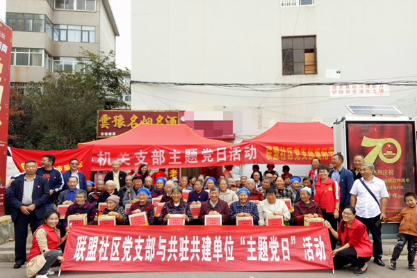 10月7日,昭阳区计生协会、区政协、区人大常委会、联盟社区等共驻共建单位在金融中心联合开展重阳节关怀慰问主题党日活动,参加活动的人员共计60余人。