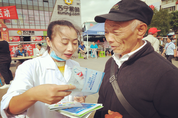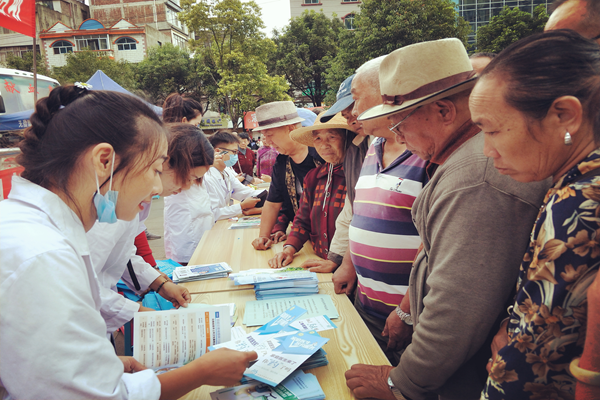 据了解,阿尔茨海默病是老年期痴呆最主要的类型,表现为记忆减退、词不达意、思维混乱、判断力下降等脑功能异常和性格行为改变等,严重影响日常生活。年龄越大患病风险越大。为贯彻落实健康中国行动(2019--2030年)提出的“到2022年和2030年,65岁及以上人群老年期痴呆患病率增速下降”的目标要求,增强全社会的老年期痴呆预防意识,该市卫健局、市计生协会从市疾控中心、市中医医院、弥勒第一医院、慈安医院、弥阳卫生院、弥阳社区卫生服务中心和城东社区卫生服务中心共七家医疗卫生机构抽调了14名医生与机关8名工作人员组成义诊宣传服务队,在城区佛城广场开展义诊、咨询及宣传活动。
