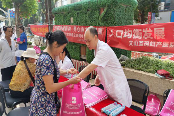 在纪念中国计生协成立39周年、计生协第21个“5.29”会员日宣传服务活动和喜迎新中国成立70周年之际,文山州卫生健康委、文山州计生协开展了以“共奋进建新功,齐心协力助健康”为主题的系列宣传服务关怀活动。5月26日,州卫生健康委、州计生协联合组织州级医疗卫生单位、中国人寿保险有限公司文山分公司、部分民营医院等10余家单位,在文山城光大步行街举行宣传服务活动。活动现场通过悬挂宣传横幅、设立政策宣传咨询服务台,向群众发放宣传资料,为群众进行健康义诊和健康咨询,宣传全面二孩政策、优生优育、避孕节育、生殖健康、日常保健、更年期生理等知识,宣传计划生育家庭意外伤害保险和计生特殊家庭住院护理保险优惠政策等。