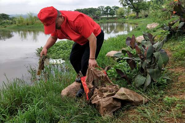 活动中,志愿者们头戴红帽、身穿党员志愿红马夹,一手提火钳,一手拧垃圾袋,沿步行道、草丛、河道,把发现的、能捡得起的、够得着的垃圾全部捡个干净。有的鞋子湿了,有的沾上了泥土,有的被污水弄脏了衣服,但是望着焕然一新的面貌,大家纷纷感受到,个个脸上都洋溢着喜悦的表情。