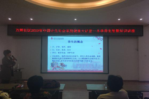 讲座特邀安宁市中医院副主任医师唐滢,到中国计生协家庭健康促进行动项目点-万辉社区,为辖区居民讲授冬季养生知识。