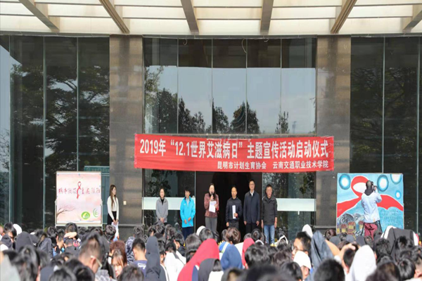 11月27日,昆明市计生协在云南交通职业技术学院,举行“12.1世界艾滋病日”主题宣传周活动启动仪式。学院院长杨金华,市计生协党组书记、常务副会长普跃英出席活动并讲话。