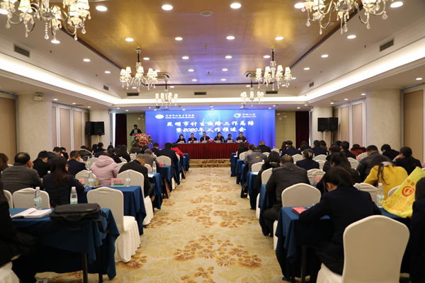 会议组织观看了2010年-2019年十年的VCR及2019年达成通报;对计生保险工作先进单位及个人进行表彰,颁发证书;四家优秀单位的代表分别作经验交流;中国人寿昆明分公司团体业务部任云霞经理对2020年计生保险产品进行系统培训;中国人寿昆明分公司俞晓副总经理针对明年的目标作方案宣导,量化了目标。