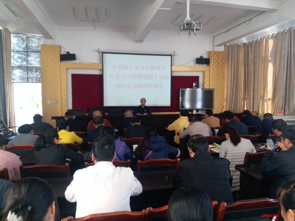 为深入学习宣传贯彻党的十九届四中全会精神,12月23日,绿春县卫健局、计生协举行学习党的十九届四中全会精神宣讲会。县委宣讲团成员、县卫健局副局长李中才作宣讲报告,县卫健局、计生协机关干部职工、县属各医疗单位、所属党支部书记等共50人参加了会议。
