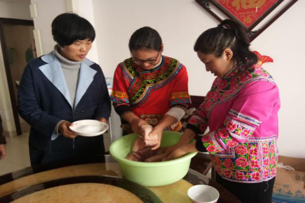郑丽英一行来到小区住户付师傅家,了解其家庭生活情况,畅谈中华民族团结一家亲,宣讲市委、市政府关于民族团结进步示范创建的实施意见精神,让各民族群众铸牢中华民族共同体意识。付师傅不仅是一位民族民间文化传播者,还是传统饮食文化手艺人。他热心社区文化建设,经常组织群众参加社区文艺活动,更让人敬佩的是其腌制腊肉、香肠和掌厨手艺独到精湛,小有名气。走访当天,付师傅为大家展示并讲解了腌制腊肉到成品做菜的整个流程,并亲自下厨做了几道腊肉炒菜做示范,让大家品尝味道,其间传授秘决,毫不保留,还表示愿意向社会大众公开手艺,让更多的人能自己制作美味,增强幸福获得感。
