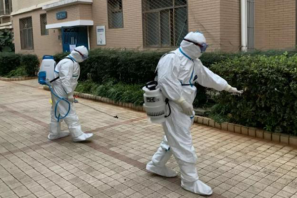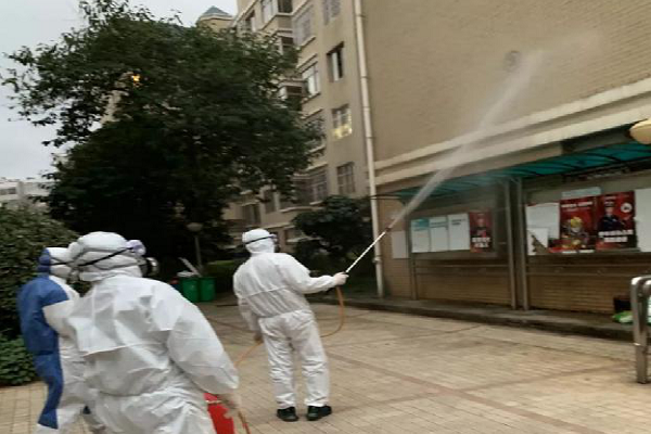 五华区计生协工作人员参与辖区内小区防疫消毒。