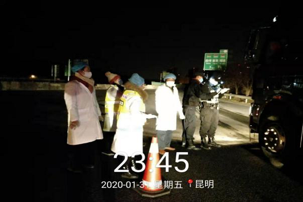 1月31日晚,盘龙区计生协工作人员配合卫健局继续在路卡值守。