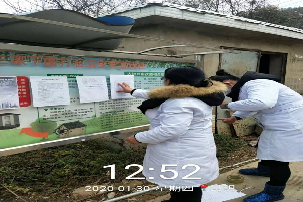1月31日九龙镇计生协成员和乡村医生入户对群众进行防疫知识宣教。