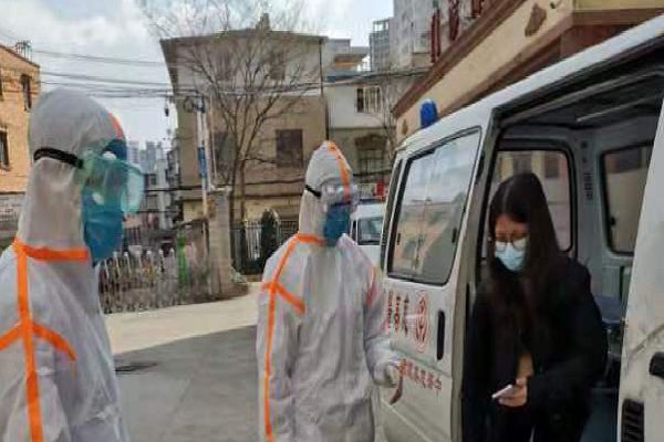 西山区马街街道计生协配合医护人员送密切接触者至西山区中医院隔离。
