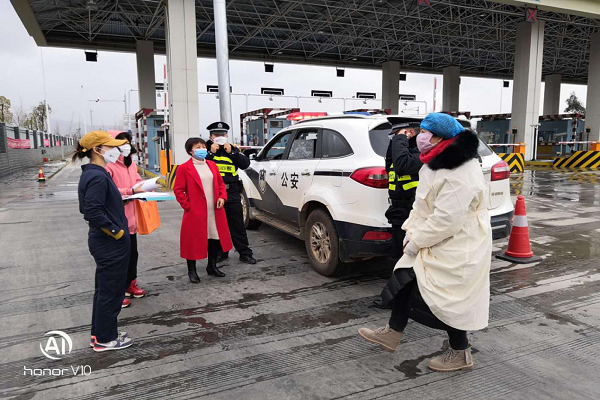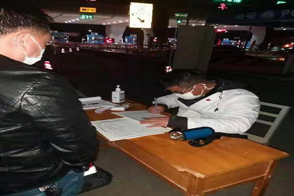 石林县计生协会员配合县中医医院医生在鹿阜收费站参与执勤排查工作,默默守护着城市的安宁和群众的健康。