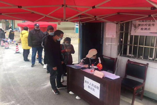 呈贡区斗南街道社区计生协工作人员为返程人员登记。