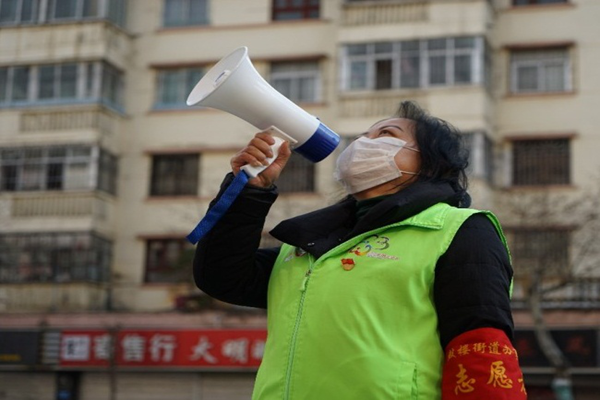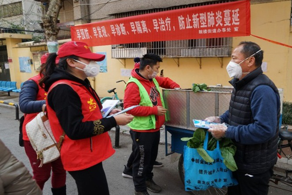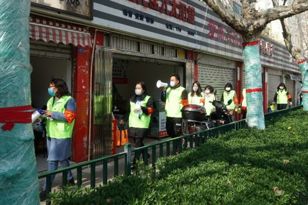 盘龙区鼓楼街道穿金社区计生协志愿者沿街宣传疫情防控。