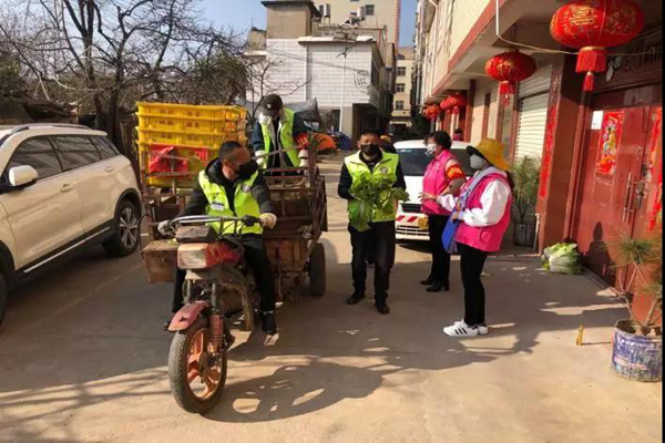 盘龙区鼓楼街道计生协志愿者参与为群众送菜服务。