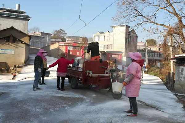 呈贡区斗南街道小古城社区计生协志愿者为村民送菜。
