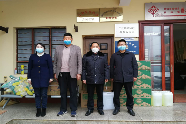 嵩明县卫健局局长、计生协常务副会长陈琪到疫情防控包保村(组)督促指导疫情防控工作,并赠送疫情消杀用品等物资。