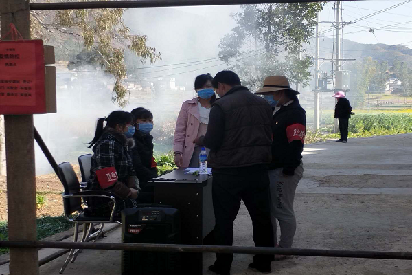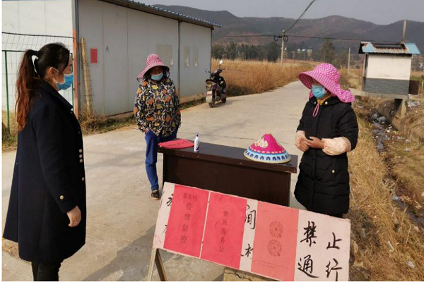 “这段时间你们尽量少出门,出门一定要带口罩,不要聚会、聚餐……”,2月6日,龙街镇龙街社区计生协理事长余晓梅在进行疫情防控宣传。在小海子村设立的疫情防控便民服务站,该村的二位计生协会员正在值班值守,对出入村人员进行劝阻引导,登记,测量体温……