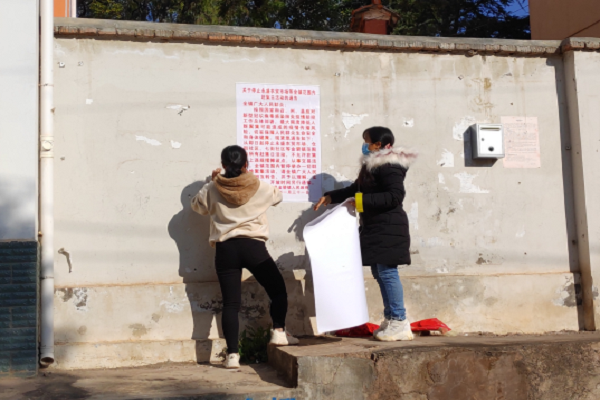 (村委会人员张贴宣传公告)