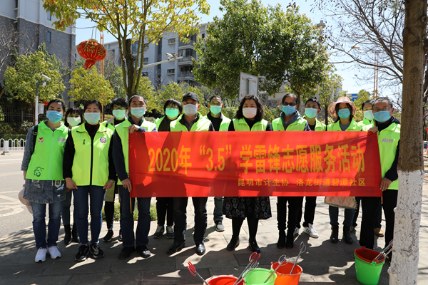 3月13日,昆明市计生协机关干部职工到呈贡区洛龙街道碧潭社区,开展入滇河道巡查、配合社区参与疫情防控等学雷锋志愿服务活动。