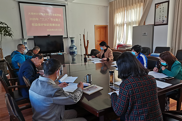 3月13日,大理州计生协会工会围绕2020年女职工维权行动月活动“ 创建安全健康平等的环境,依法维护女职工合法权益和特殊利益”的主题,开展2020年“三八”节女职工权益保护知识竞赛活动。